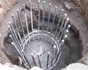 Pengecoran lobang Yang sudah di masukan rangkain besi sepiral